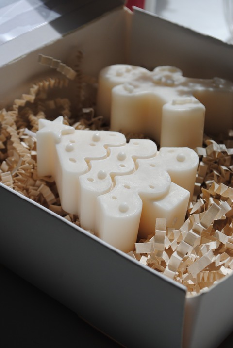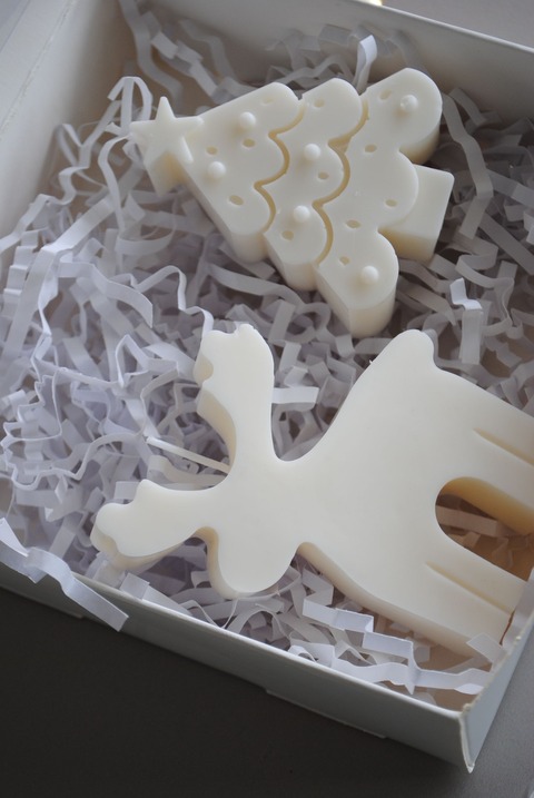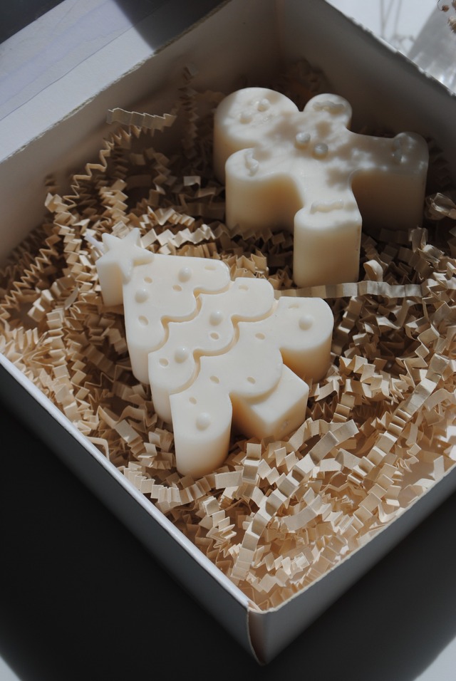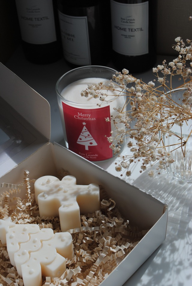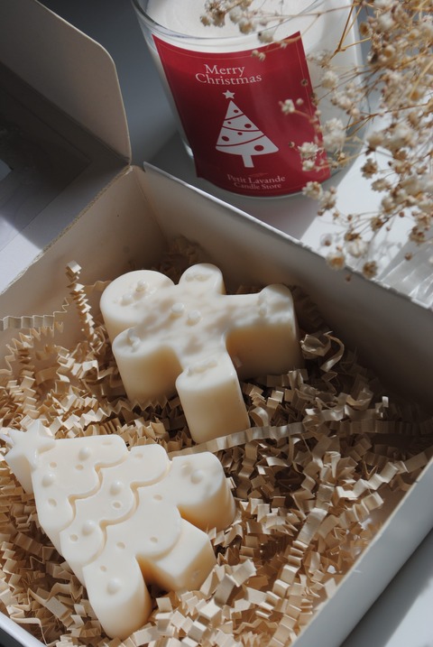 Contiene 2 formas de Navidad a elección en cera de soya Pilar aromatizada.